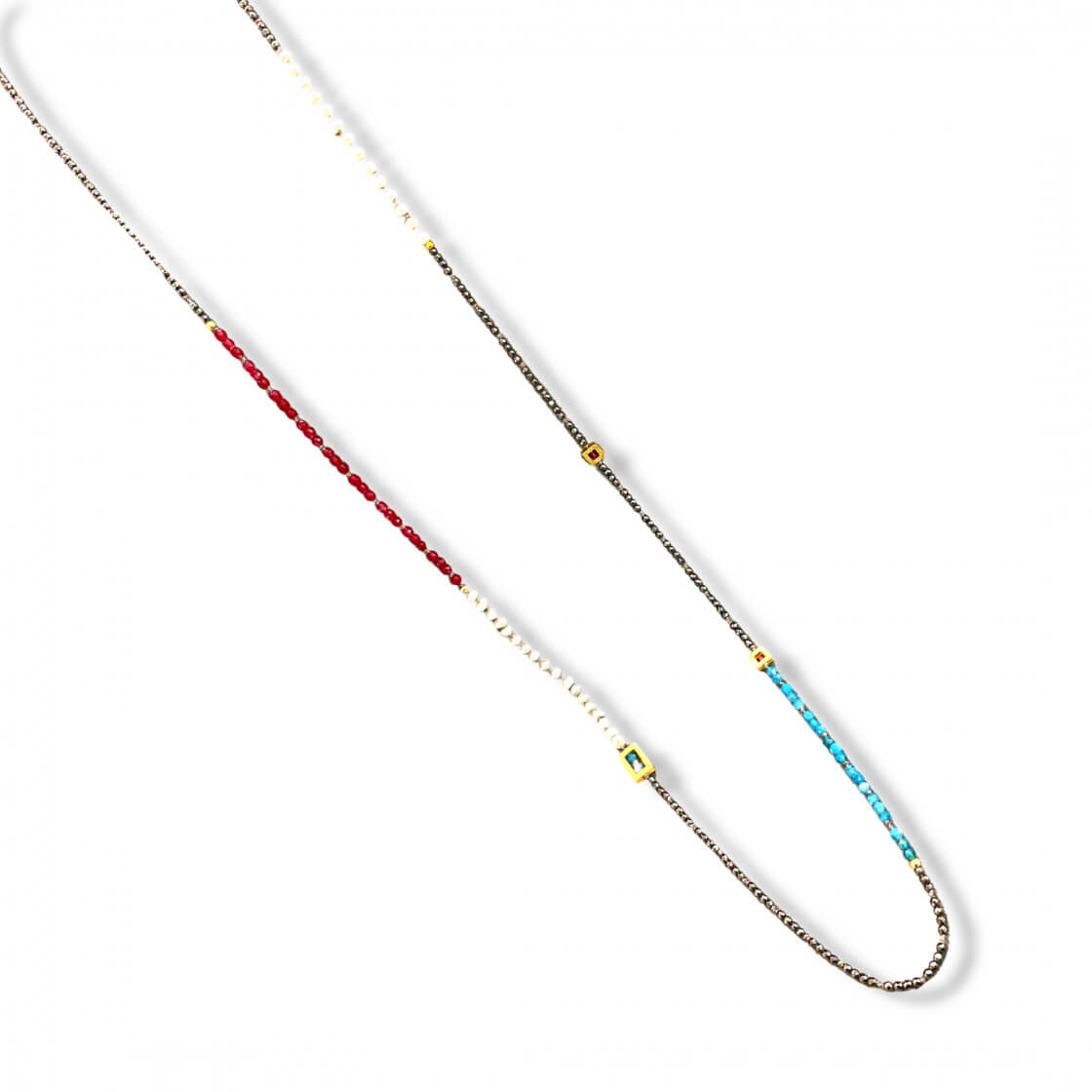 Your new wardrobe essential! This hand-knotted necklace can be worn long or doubled as a shorter, layered piece. Beautiful combination of semiprecious stones make this piece extremely versatile. Can easily dress up or down.